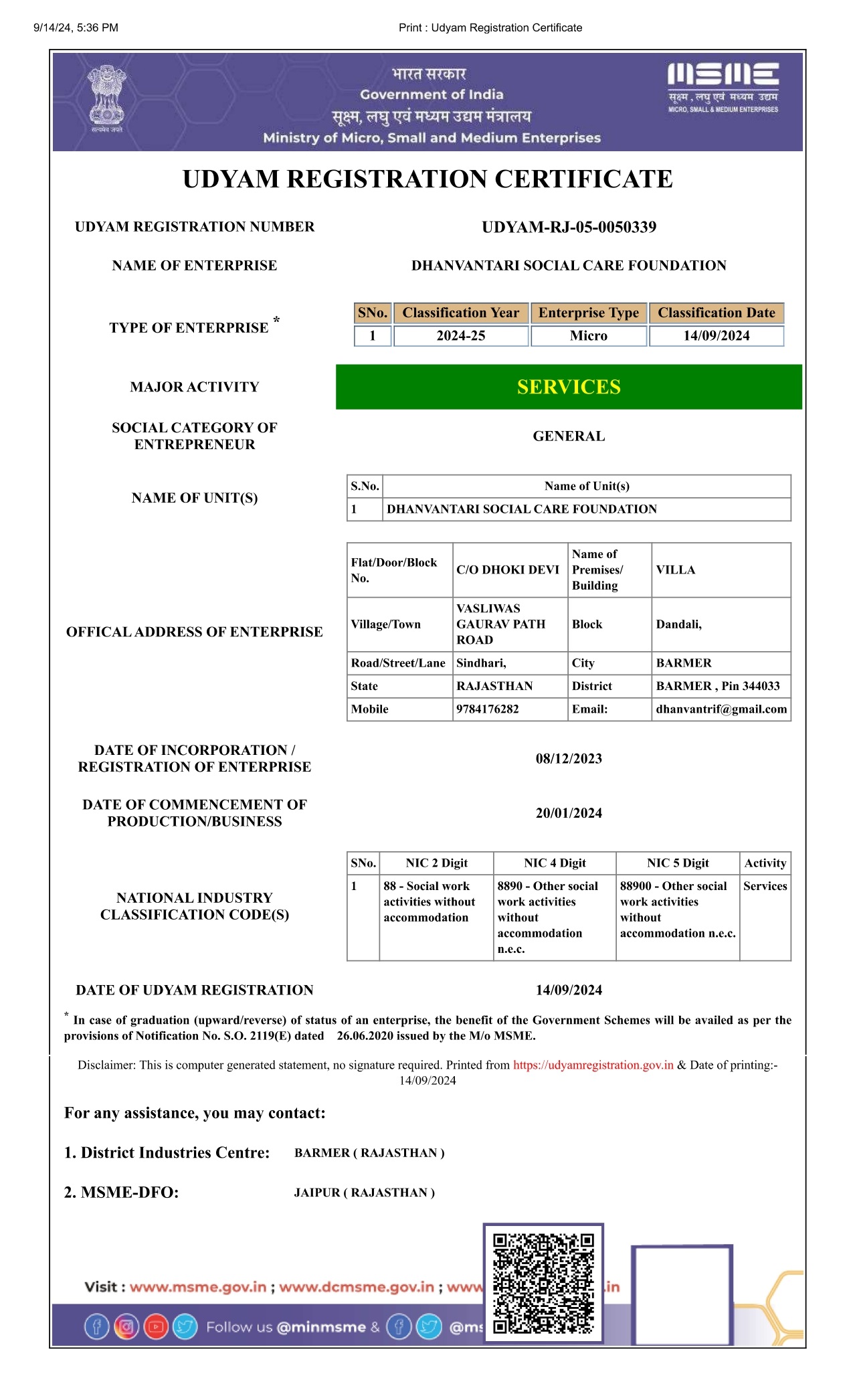 Dhanvantari Social Care Foundation: A Grass-rooted, Socially Active, Registered (Non-Political) Not-for-Profit, Voluntary Organization based in Rajasthan, India. Founded in 2023, Dhanvantari Social Care Foundation is a nonprofit dedicated to uplifting underprivileged communities through healthcare, education, and livelihood support. Our work spans rural and urban areas, focusing on marginalized groups.